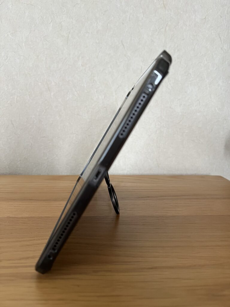 せっかくの軽いケースだから、スタンドも軽くて持ち運びしやすいものにしたくてスマホリングを購入しました。iPhoneとiPadとで兼用しています。