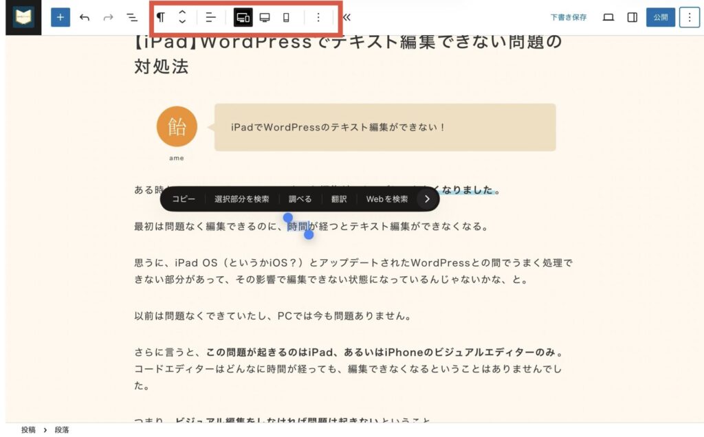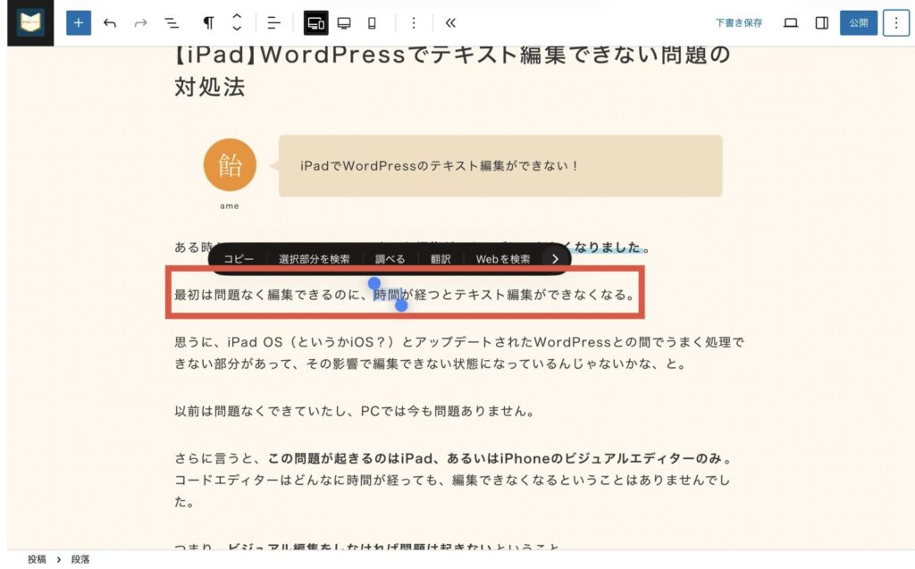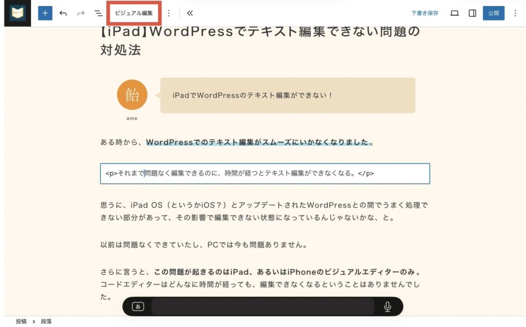 【iPad】WordPressでテキスト編集できない問題の対処法