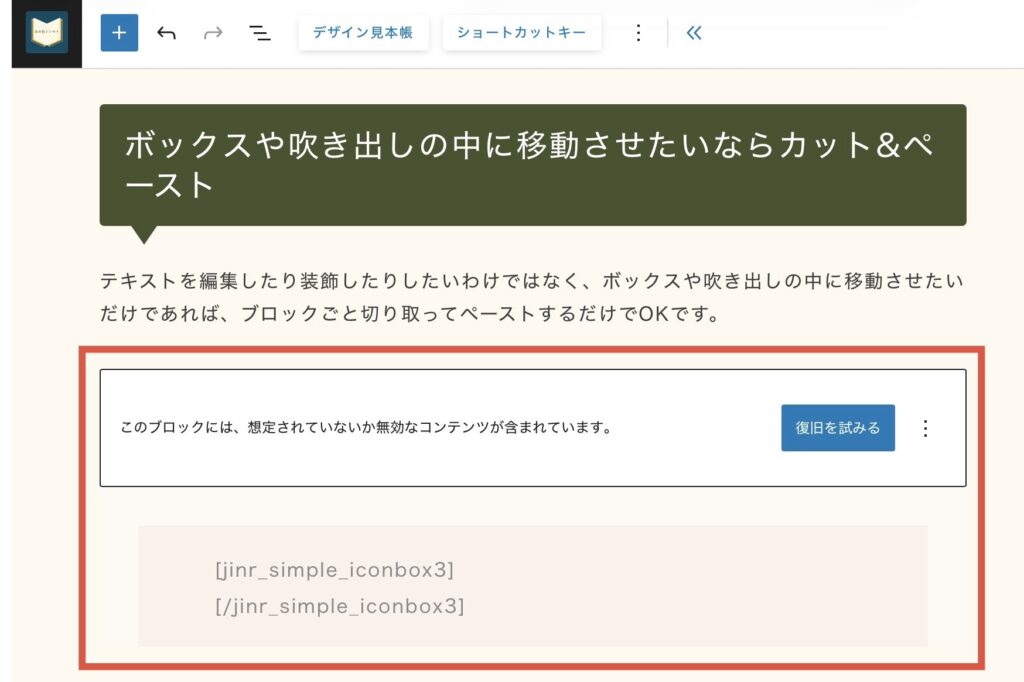 テキストを編集したり装飾したりしたいわけではなく、ボックスや吹き出しの中に移動させたいだけであれば、ブロックごと切り取ってペーストするだけでOKです。